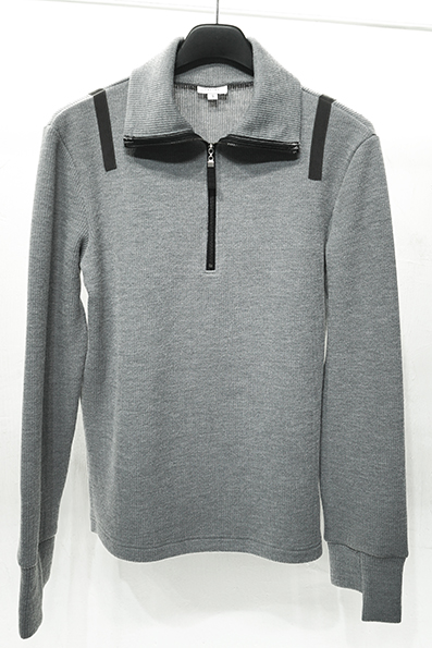 Smoke grey zipped neck pullover sweater.