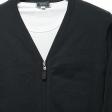 Black stretch nylon yarn zipped front cardigan sweater.