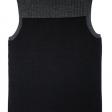 Contrast color neck ribs, armhole ribs and upper back ribs in charcoal grey melange color yarn.