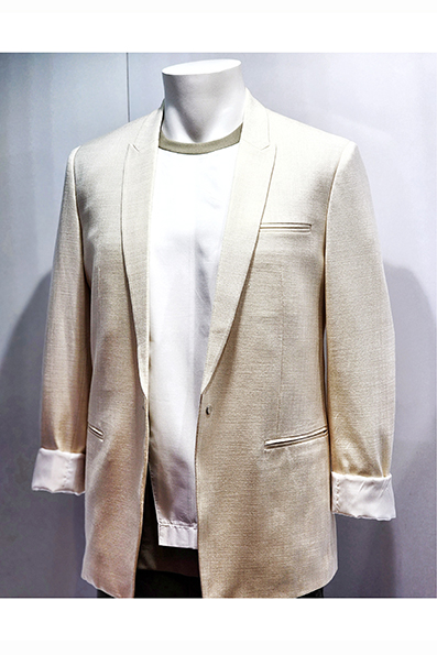 Slim cut. medium weight jacket made of cream viscose ( the texture imitates linen, but non-crease) .