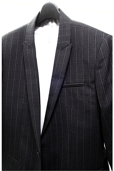 Slim cut. light weight jacket made of wool mixed fabric of charcoal & dark red checks.