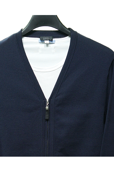 Diamond blue stretch nylon yarn zipped front cardigan sweater.