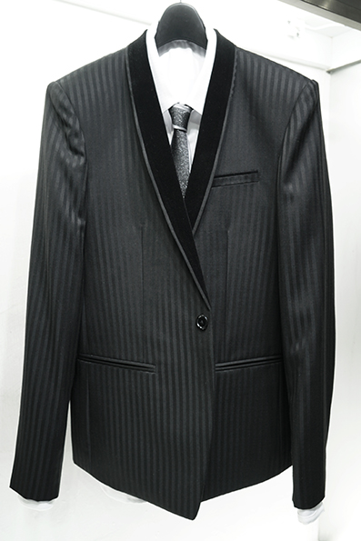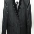 Slim cut black striped tux wool-mix jacket (can have pants to match as set, and price shown not include pants).