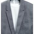 Slim notched lapel with a matt silver mini round stud on left lapel.