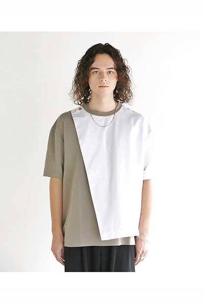 Across chest a diagonal white color nylon flap, fastened on right shoulder with 2 gold metalic buttons.