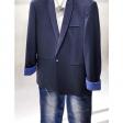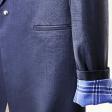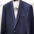Slim cut. medium weight jacket made of mid blue viscose ( the texture imitates linen, but non-crease) .
